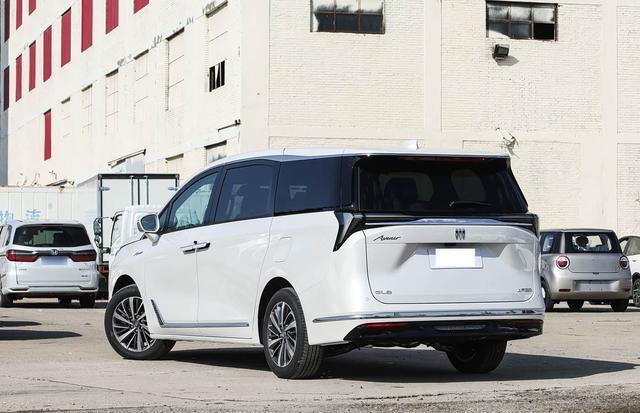 再来看车身侧面部分,车身侧面以 5219/1878/1799mm 的长宽高与 3088mm 超长轴距,奠定宽敞空间基础。双平行腰线从车头延伸至车尾,勾勒出优雅修长的轮廓,配合车窗周围的镀铬饰条与 18 英寸多辐条轮毂,彰显高端气质。实用配置堪称点睛:双侧电动滑移门支持感应开启,抱娃或拎物时无需手动操作,便利性媲美同级新能源车型。艾维亚版本的 B 柱采用镀铬装饰,C 柱处镶嵌专属标识,细节处彰显身份;而 BLACK EDITION 套件则以亮黑车身与黑色饰件,满足年轻用户的个性化需求。隐藏式行李架与流线型车顶设计,不仅提升美观度,更优化风阻表现,为静谧性提供支撑。